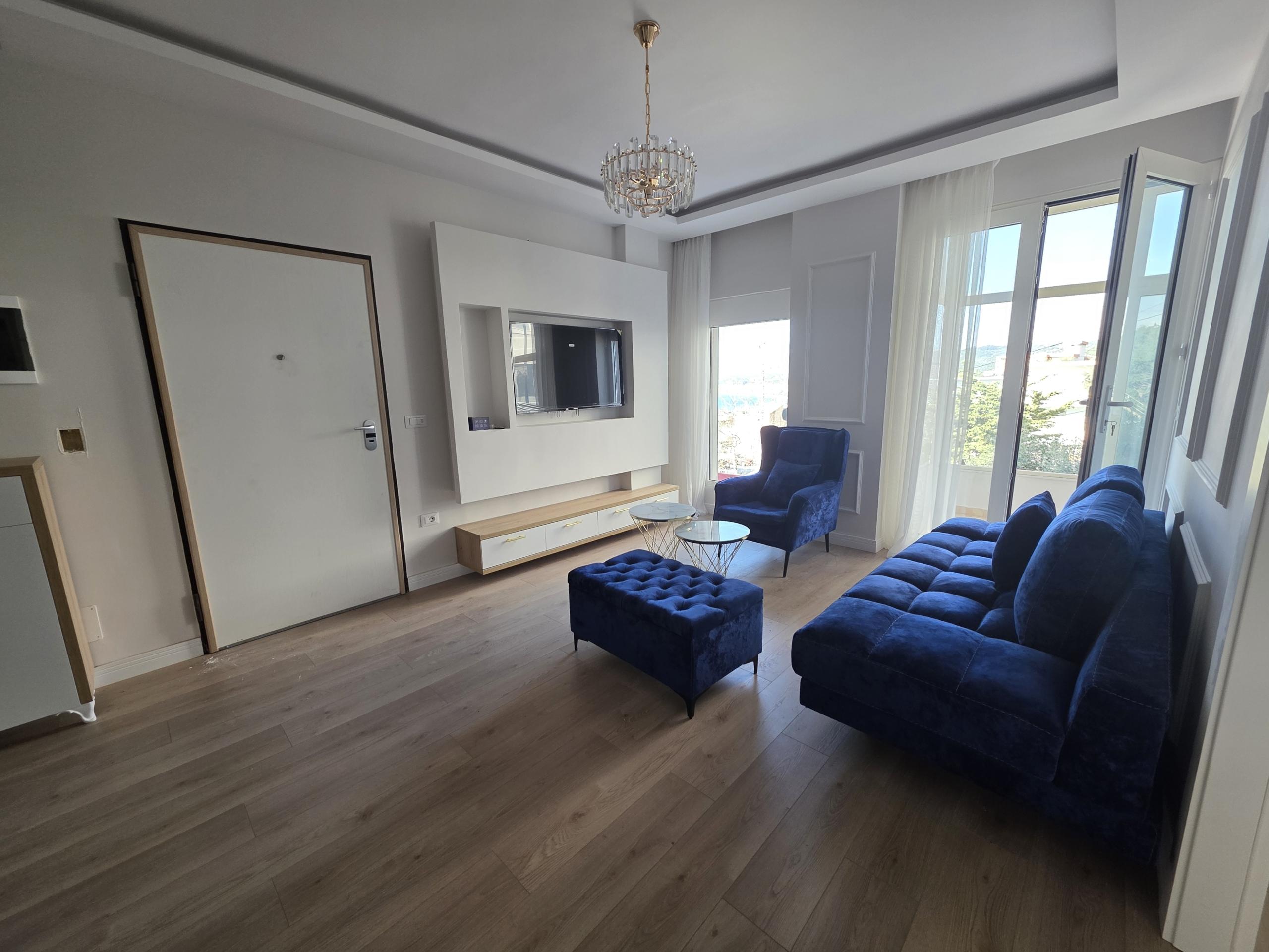 Apartamenti ndodhet tek Uji i Ftohte ne Vlore, ne nje rezidence te re me pamje nga deti. Mobilimi eshte modern dhe i paperdorur fare. Ne hyrje te apartamentit ndodhet salloni i madh me dalje ne ballkon dhe pamje nga deti. Ne fund te sallonit ndodhet kuzhina e veçuar dhe e paisur me lektroshtepiake cilesore. Me pas eshte tualeti me pllaka deri ne tavan dhe hidrosanitare moderne. Tualeti ka edhe dritare per ajrim. Me pas eshte dhoma e femijeve dhe dhoma e çiftit me dalje ne ballkon. Oborri i rezidences perdoret per parkimin e makinave te banoreve. Kontakto tani ne numrin e telefonit 0697050119 per me shume informacion!