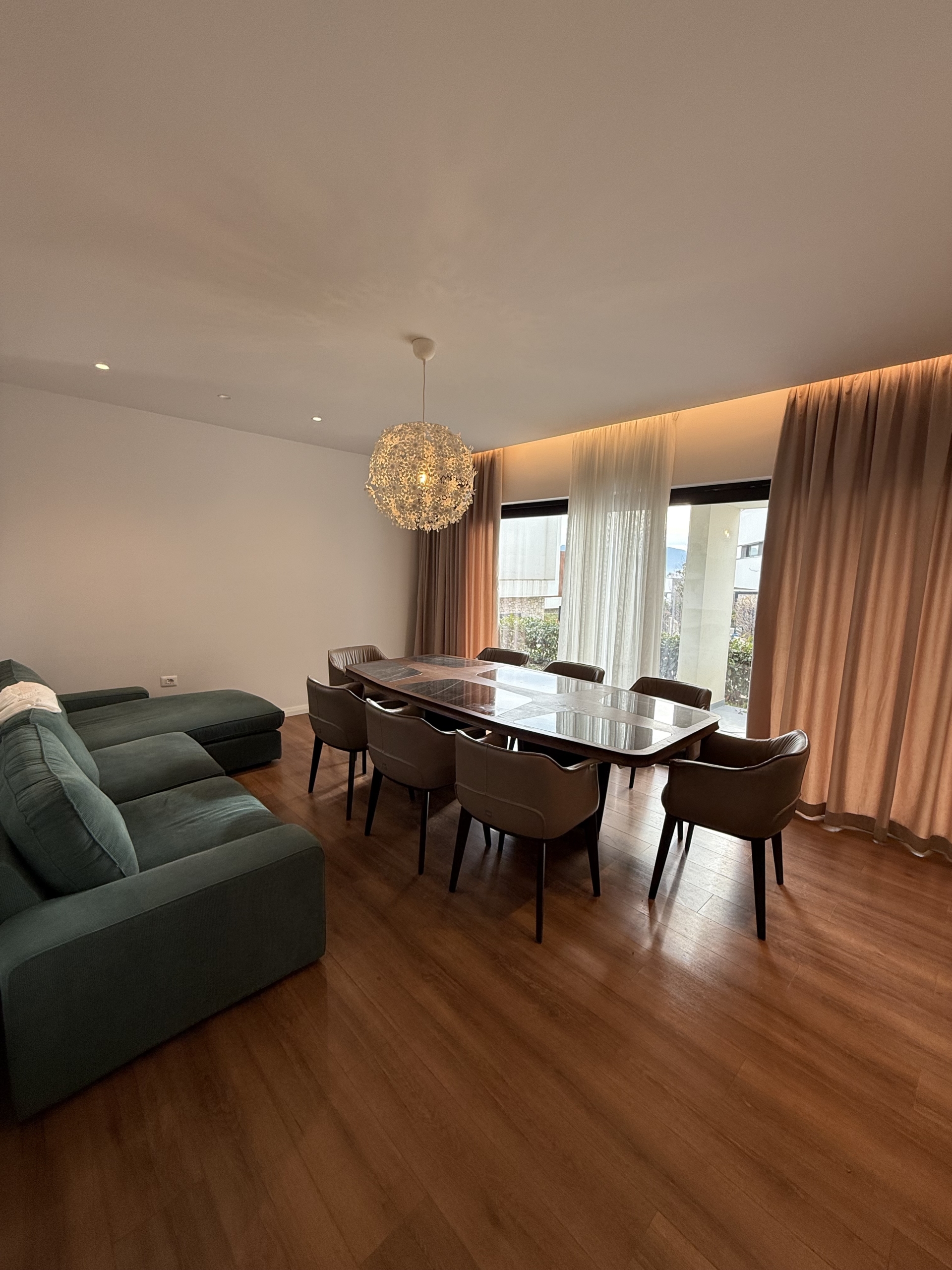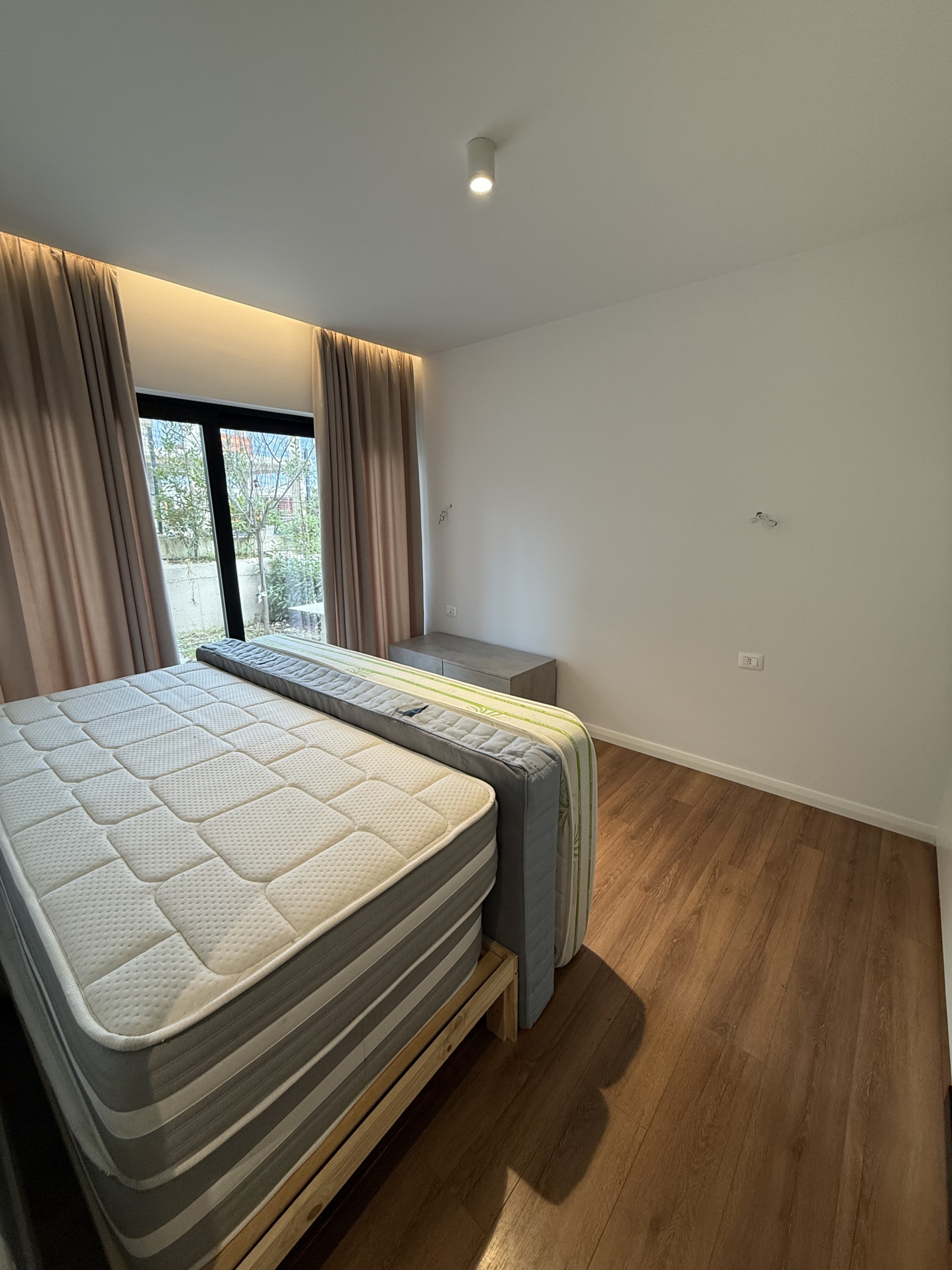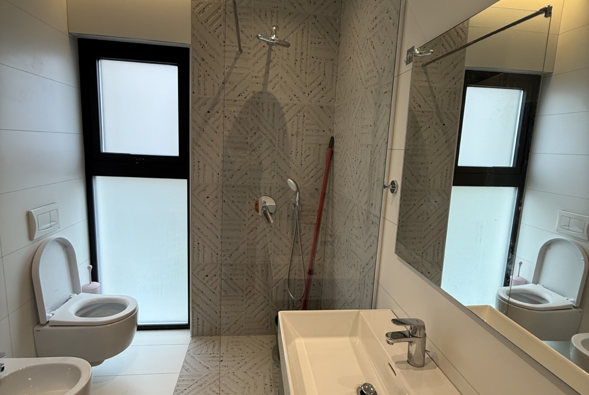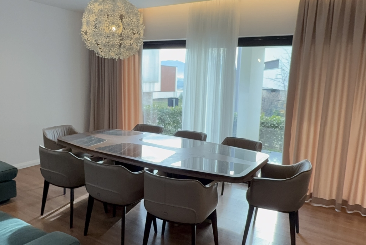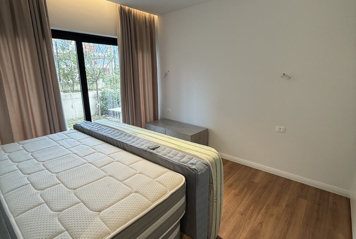 Apartament 2+1 modern dhe i mobiluar , i pozicionuar në një nga zonat më elitare dhe të qeta pranë Liqenit të Farkës, me një sipërfaqe totale prej 101 m² bruto dhe 87 m² neto, i shoqëruar nga një verandë prej 20 m² dhe një kopesht privat prej 60 m² që ofrojnë hapësirë ideale për relaks dhe jetë në natyrë. Ambienti i brendshëm përfshin një sallon të bollshëm dhe plot dritë natyrale, të kombinuar me një kuzhinë të kompletuar dhe funksionale, me dalje direkte në verandë, dy dhoma gjumi komode dhe të mirëorganizuara, si dhe një tualet me dritare që siguron ajrim dhe ndriçim natyral. Apartamenti ofrohet me post parkimi të dedikuar dhe dallohet për qetësinë, privatësinë dhe pamjen e mrekullueshme nga liqeni, duke e bërë një zgjedhje ideale për banim cilësor dhe komod.